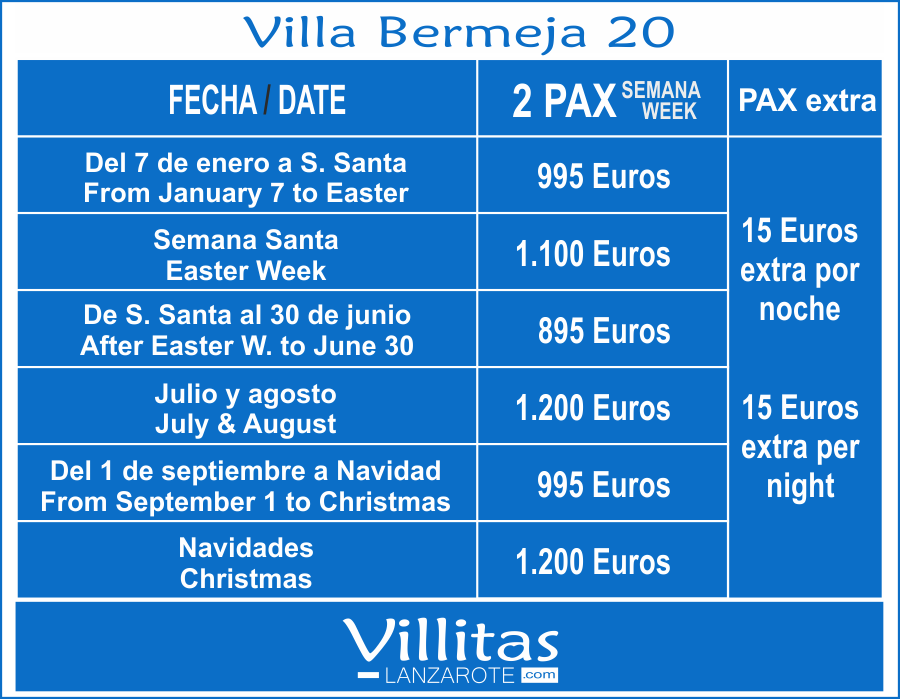 - Por favor, envíenos un correo a; villitaslanzarote@gmail.com indicando: